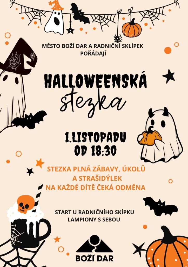 Zveme Vás na Halloweenskou stezku plnou zábavy, úkolů a strašidýlek. Start u Radničního sklípku. Lampiony s sebou.