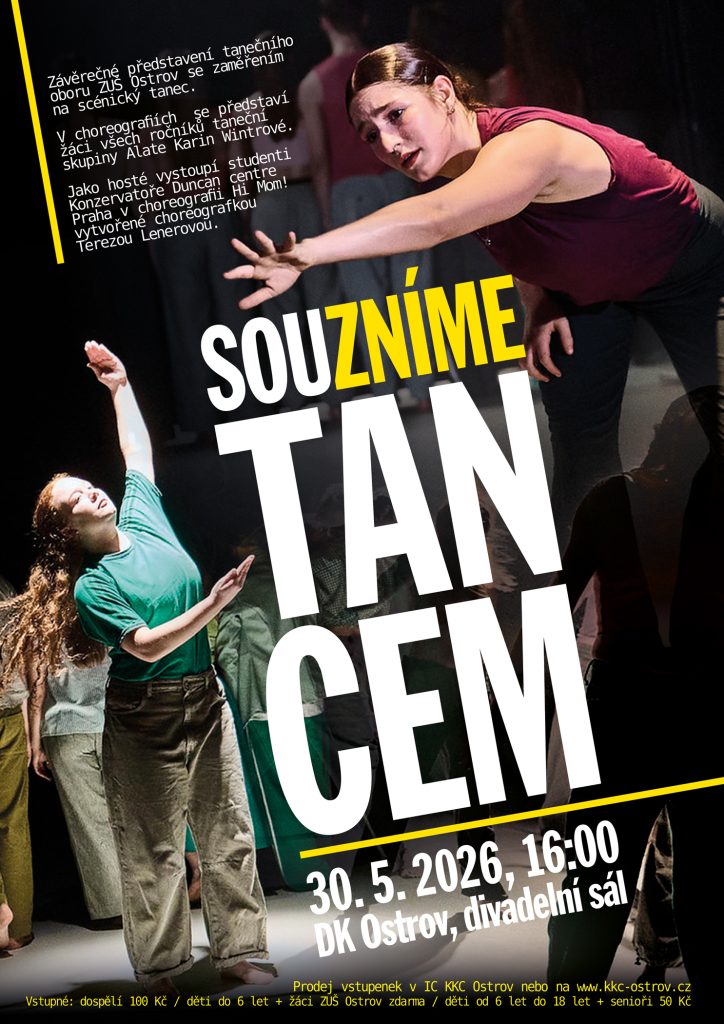 Závěrečné představení tanečního oboru ZUŠ Ostrov se zaměřením na scénický tanec. V choreografiích se představí žáci všech ročníků taneční skupiny Alate Karin Wintrové. Jako hosté vystoupí studenti Konzervatoře Duncan centre Praha v choreografii Hi Mom! vytvořené choreografkou Terezou Lenerovou.